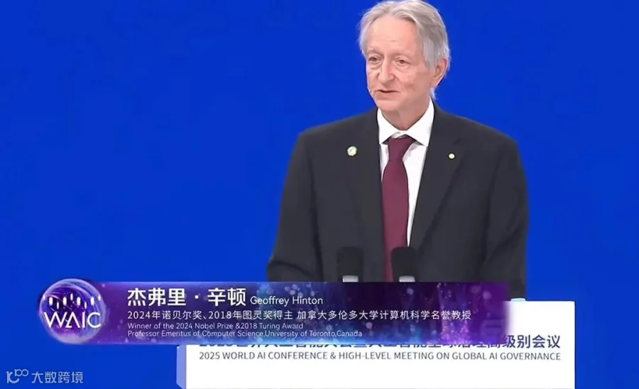 7月26日,上海世博中心,2025世界人工智能大会(WAIC)主论坛。77岁的杰弗里·辛顿(Geoffrey Hinton)缓步登台——这位因腰椎疾病几乎无法乘机的“AI教父”,首次以线下形式踏上中国土地,全场起立致敬。