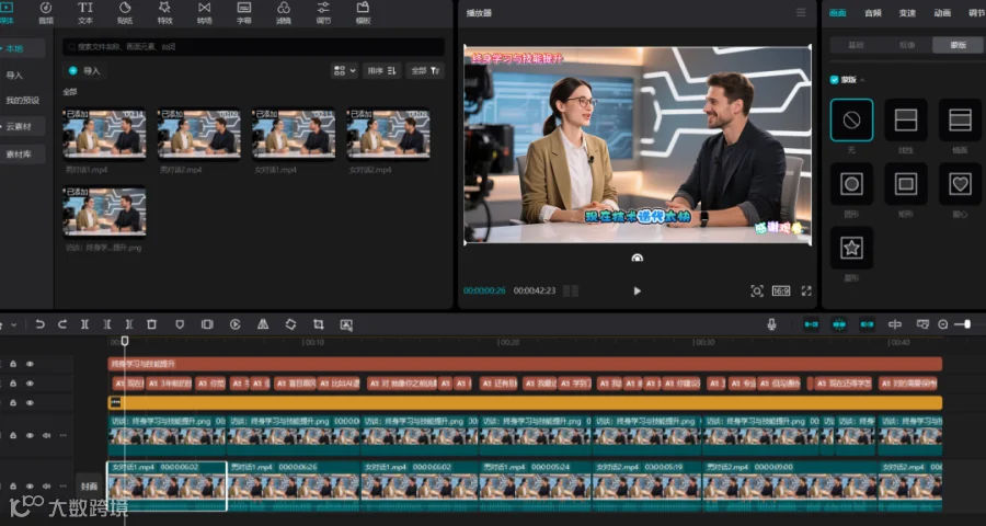 把前面女生对话和男生对话已经设置好的蒙版,复制粘贴到后面可以使用。具体需要看实际效果调整。
