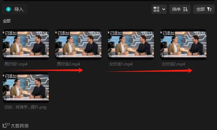 1、导入所有视频片段和一张原图。视频片段最好根据女生对话和男生对话的次数来命名,便于添加视频。