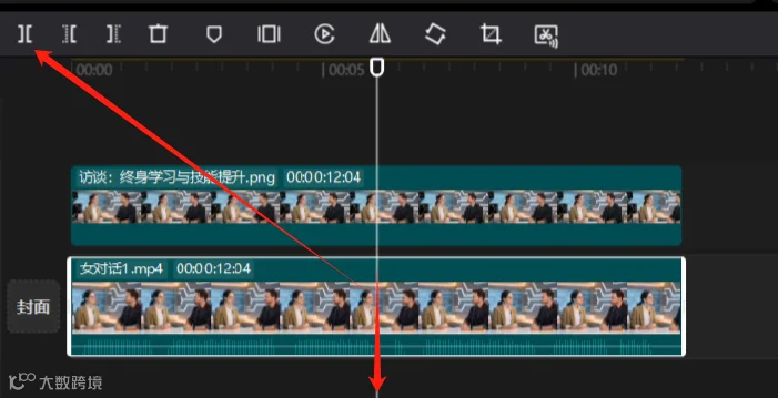 5、先播放女生讲话的视频,根据上面的对话文案,女生说完第1句以后,应该是男士说话了。在这里把视频分割开,剩余的视频放到第2次对话。