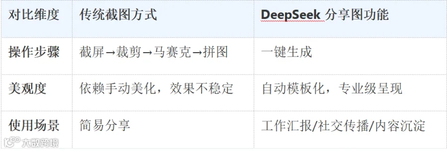 在DeepSeek之前,AI聊天内容分享多依赖第三方工具或手动截图。此次原生集成"对话转图片"功能,标志着AI应用正式进入"可便捷传播"的新阶段。其背后蕴含三重行业意义:
