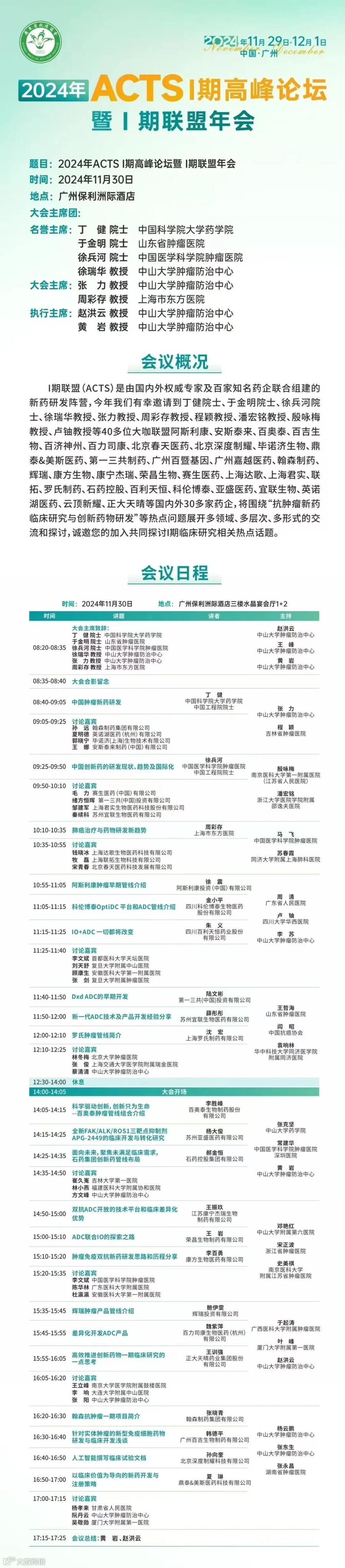 2024年11月30日,由中国抗癌协会肿瘤药物临床研究专委会(ACTS)主办的2024年肿瘤药物I期临床研究学术会议(I期联盟年会)在广州圆满落下帷幕。