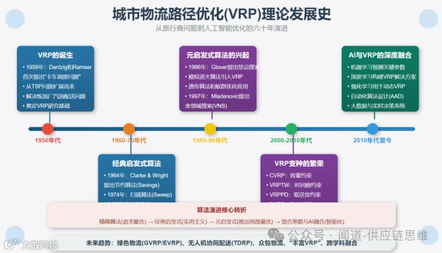 "在理论上,理论和实践是没有区别的;但在实践中,它们有区别。"当我与一位资深物流规划师讨论VRP问题时,他引用这句名言来形容VRP的求解困境。虽然数学上可以精确定义最优路径,但现实中,我们常常需要在有限时间内找到"足够好"的解决方案。这种理论与实践的张力,恰恰驱动了VRP求解算法在过去六十年中的三次重大演进。
