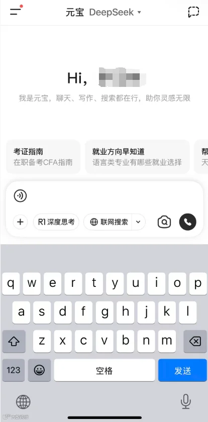 首先,打开腾讯元宝手机端应用,点击首页的电话图标,切换至口语陪练模式。