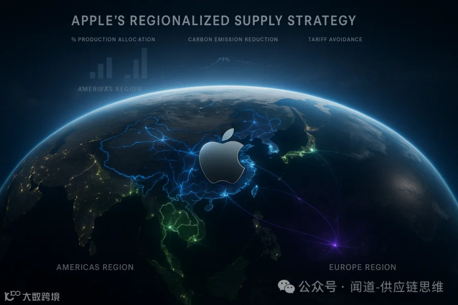 展望更远,苹果可能正在构思一个更加区域化的全球供应网络架构。这一愿景中,全球市场将划分为几个大区域,每个区域内形成相对自给自足的供应生态系统: