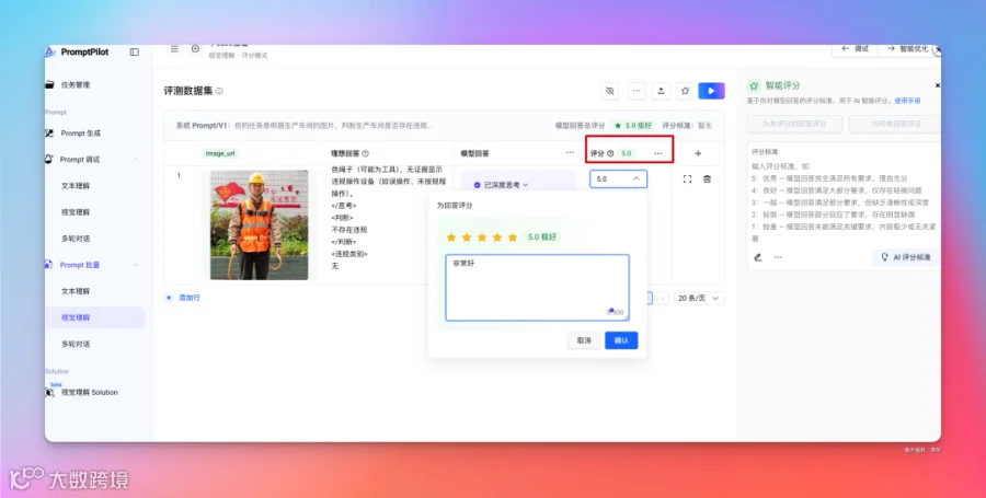 比如我们选择了评分模式,这里默认进来了「文本理解」,需要手动切换下到『视觉理解』。