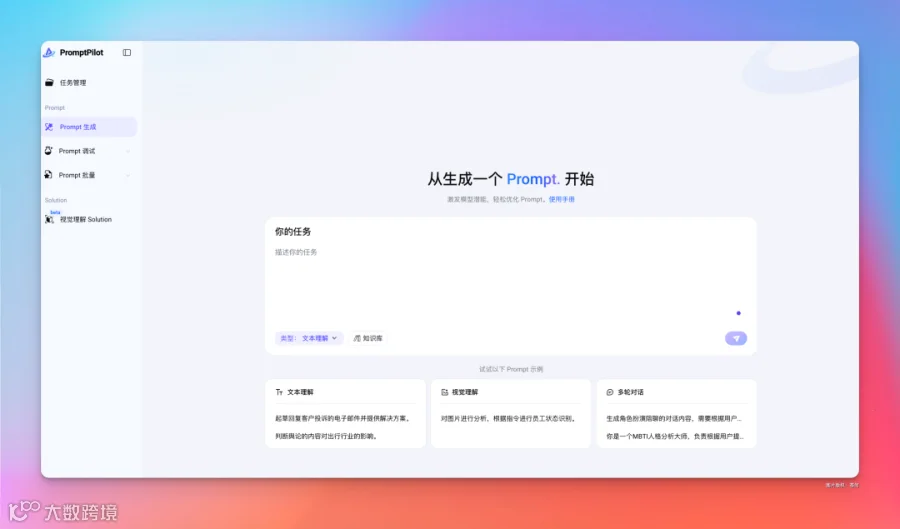 他叫 PromptPilot。能通过简单交互,理解用户真实需求,自动提炼评估标准,可链接知识库,生成更好的提示词。