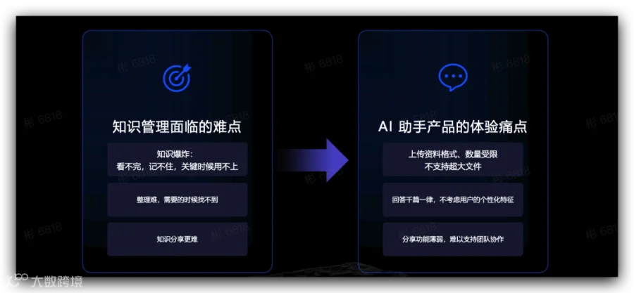 体验下来,最厉害的地方是可以个性化进行知识分享,比如一个知识库分享给不同人,不同人收到的结果是不一样的,比如用户是开发,那就会针对开发关注的点给答案,用户是产品,就会给产品关注的答案。