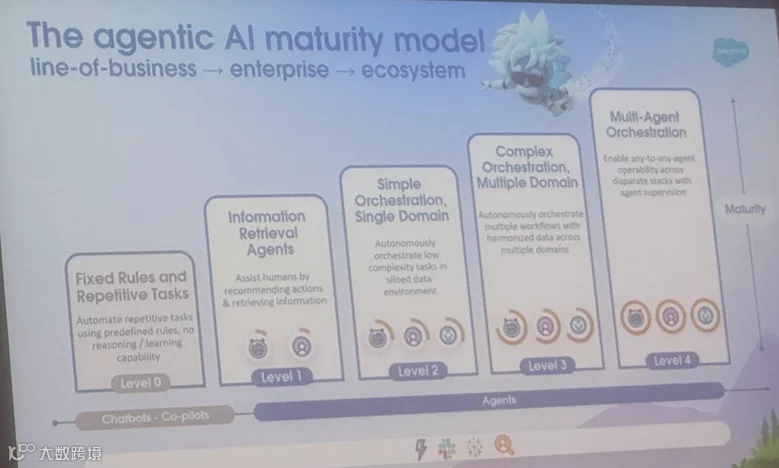 众多美中科技公司都已经押宝在AI智能代理技术上,其中最积极的就是Salesforce,正全面向AI智能代理转型。该公司定义AI智能代理为具备“自主性(agency)”的AI系统,能够自主感知环境、制定决策并采取行动。与传统AI工具型系统相比,智能代理具备“持续目标导向”的行为能力。这一技术具备目标导向的功能,能够完成多种复杂任务。该公司认为智能代理将从固定的交易场景向复杂的交响型互动发展。