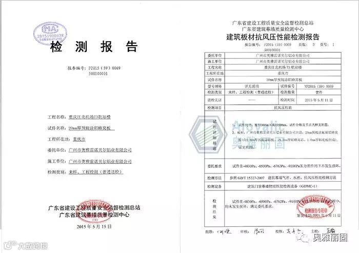 重庆项目蜂窝板材料力学性能计算,抗风压9.1千帕测试