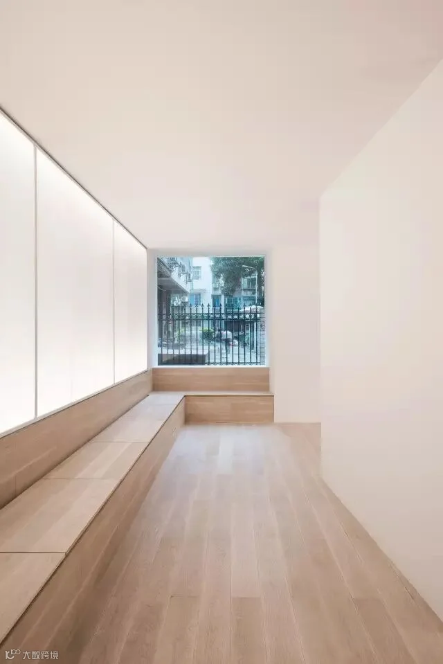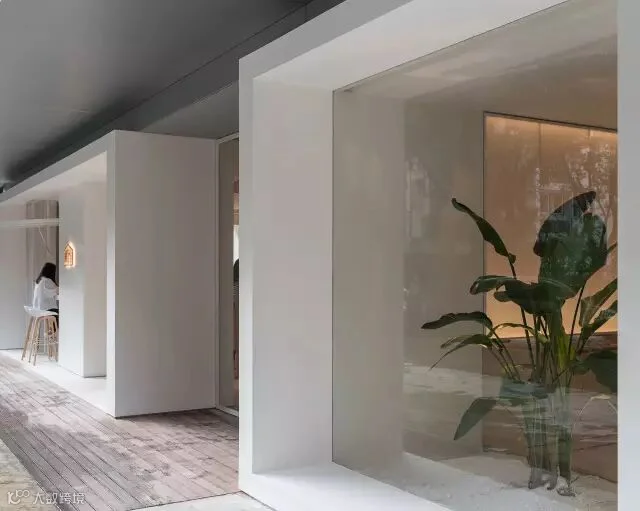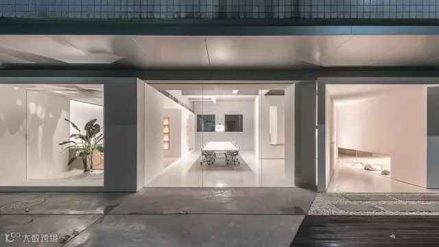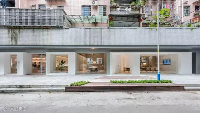 三个并列的白色盒子由内穿出,构成统一的外立面。而盒子间留出的‘之间地带’如同城市街巷的延续,吸引着过路行人。
