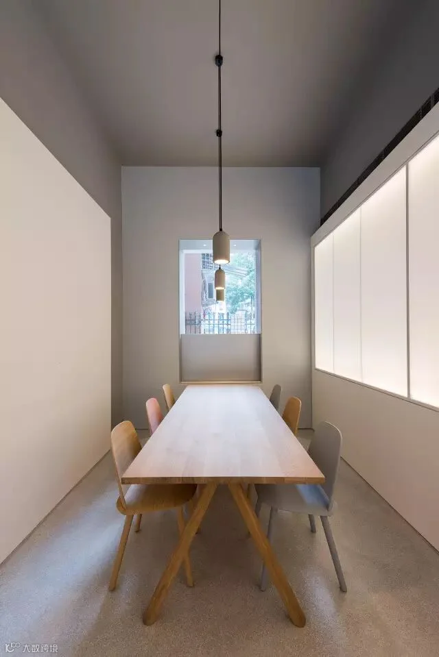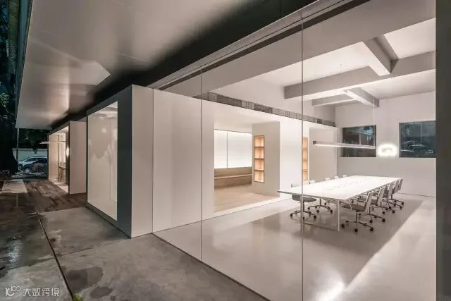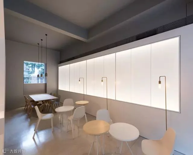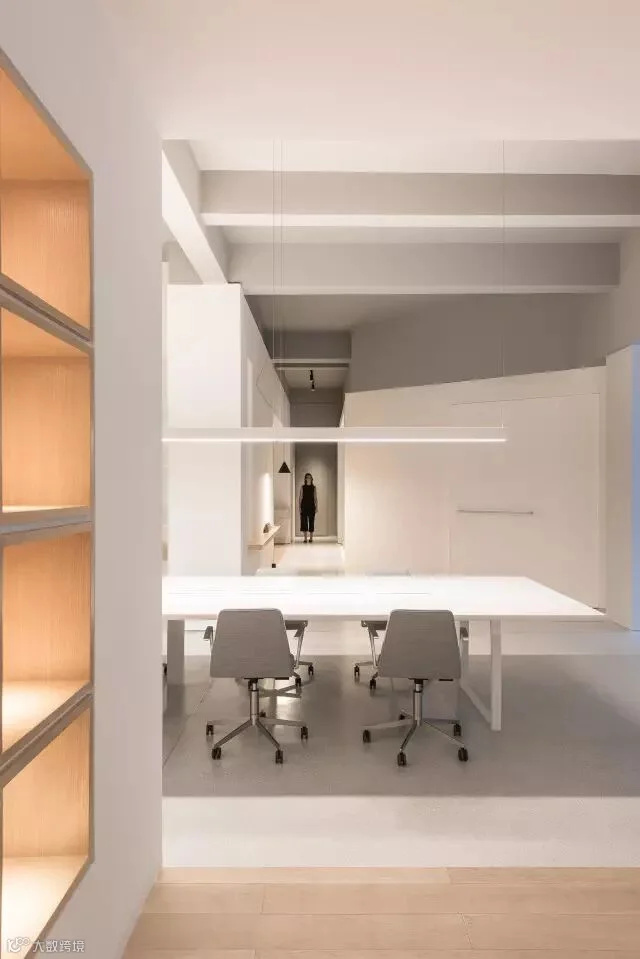 材质的运用进一步定义空间。平滑的白色墙壁与水磨石地板占据了主要的公共空间,如同画布捕获着光与影;半透明墙面在公共咖啡馆与工作场所间造成微妙联系;更私密的区域多选用自然原材,例如‘头脑风暴’区的连续木材表面以及休息区中的砖石墙面。