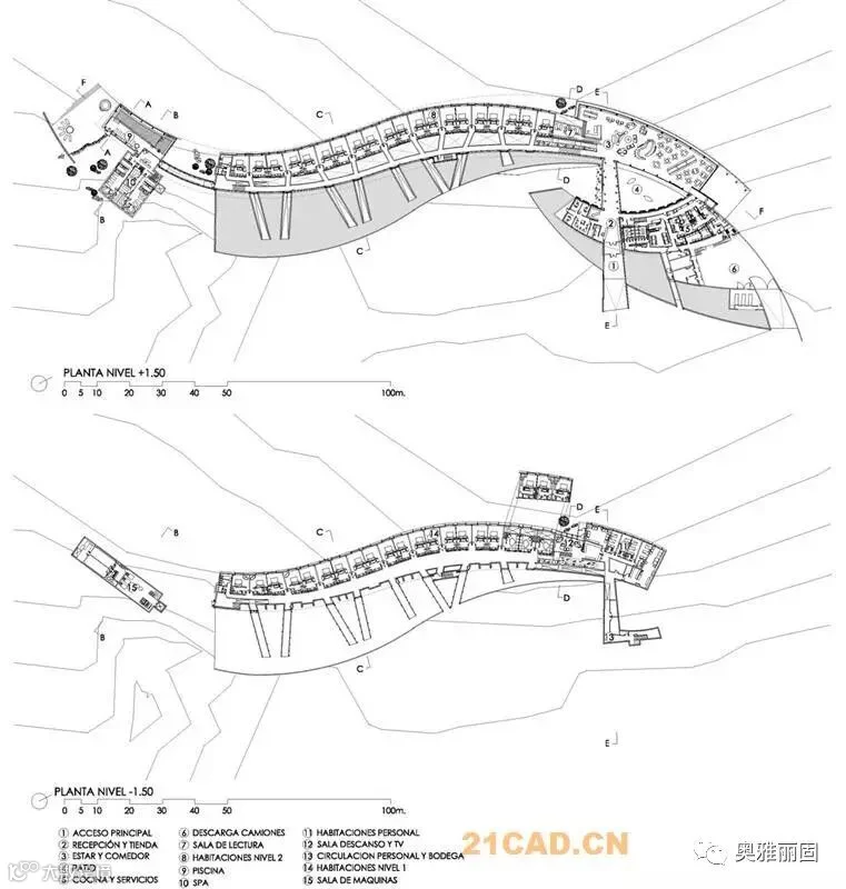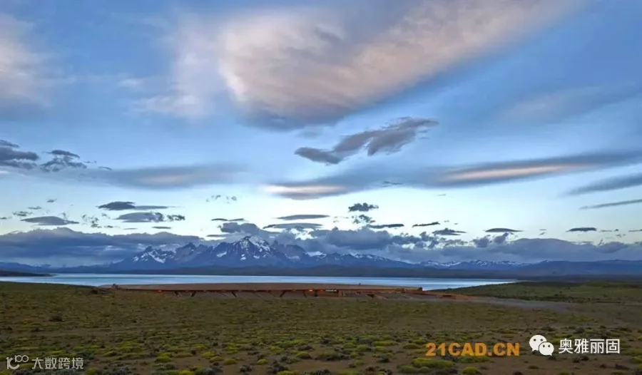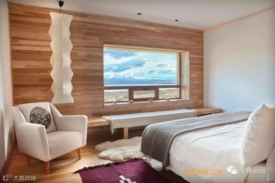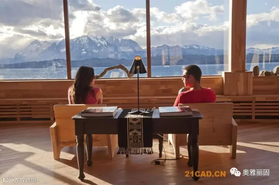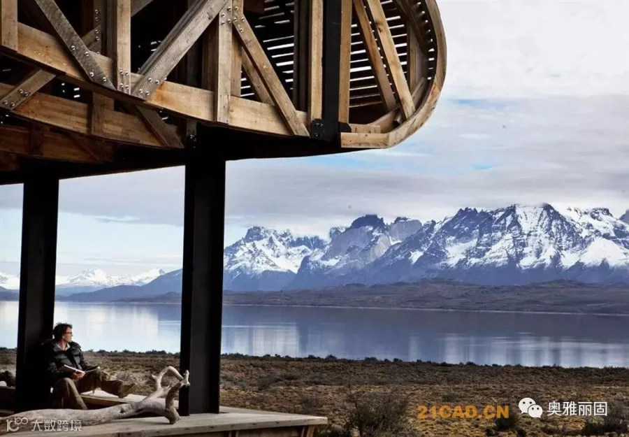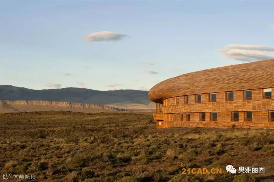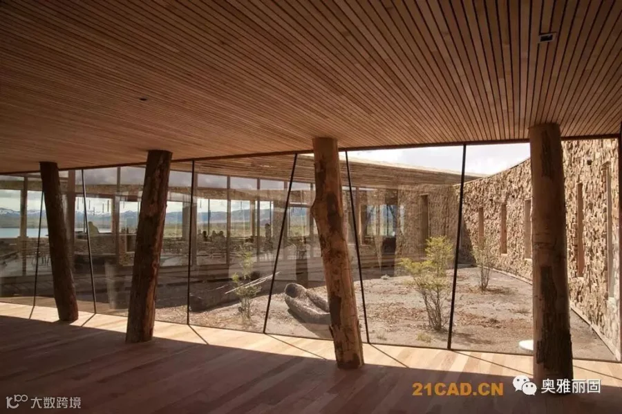 酒店位于智利Torres del Paine国家公园的入口附近,面对萨米恩托湖。萨米恩托湖是这片区域的璀璨明珠,湖对面是深远巍峨的山峦。酒店谦虚的融入现场环境,就如湖边长存的史前动物远古化石。酒店与场地的斜坡融于一体,覆盖上水洗木板,在阳光下闪耀着银色光泽。酒店内部有着温暖舒适的空间,泳池,餐厅,客房均面对着美丽的山景。客人们在酒店里面安心休息,享受自然,也能到野外进行骑马,登山,野驾等等活动。