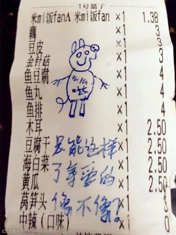 外卖小哥应顾客要求画的小猪佩奇,图片来源:《人物》转引自网络