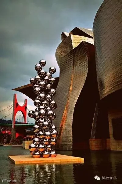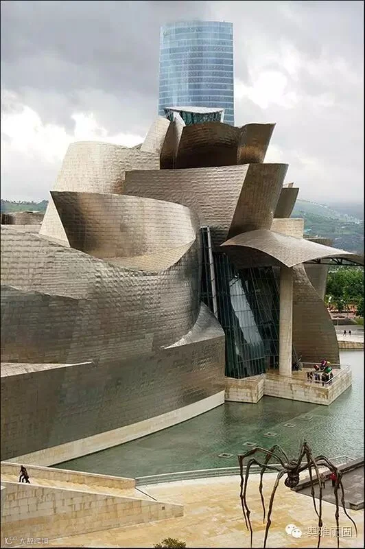 然而,西班牙建筑中也有这么一把“钛金剑”,那就是由解构主义建筑大师弗兰克盖里设计的古根海姆美术馆,下面让我们欣赏下历经百年,同样拉风的钛建筑。
