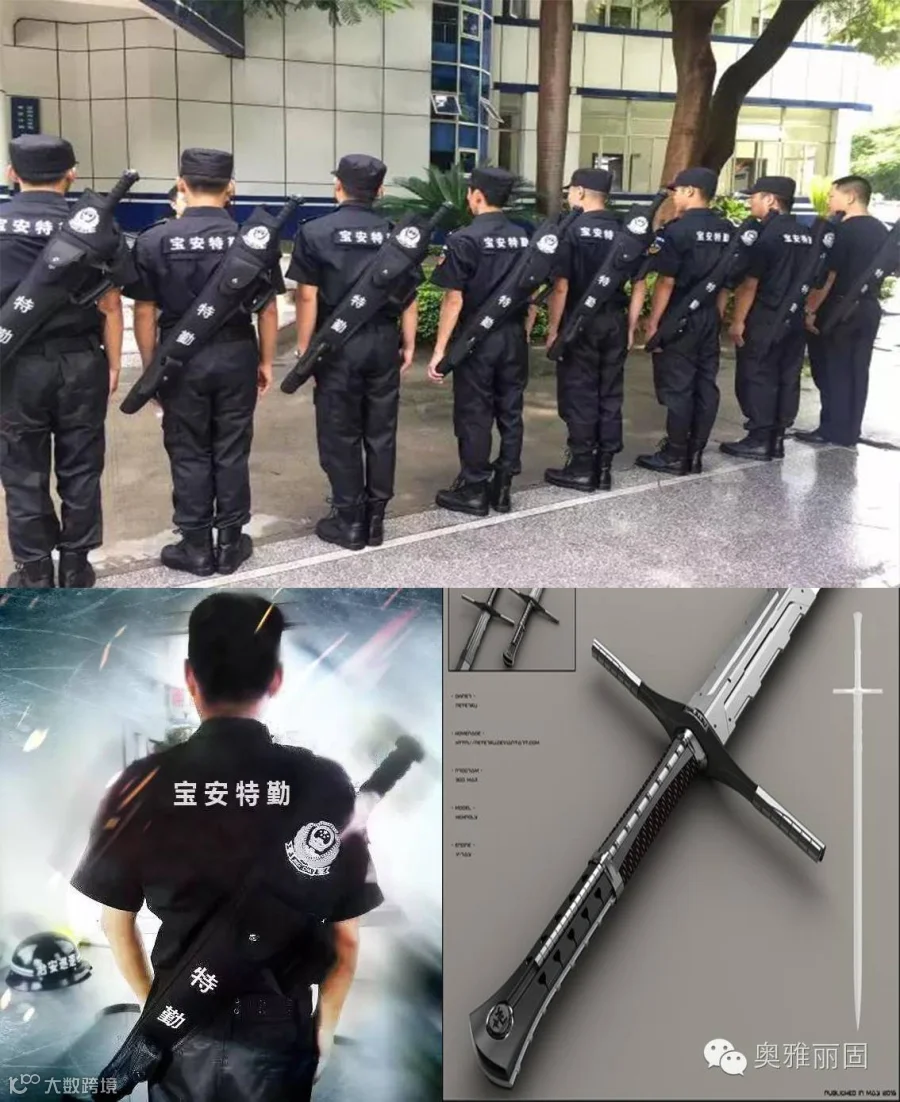 警叔们身背大剑?别怀疑,这不是cosplay,这真的是宝安警叔配备的新装备---钛金"大宝剑"。