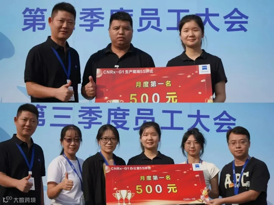 本次员工大会集中表彰了2023年第三季度蔡司之星、精益建议奖、OPL优秀课程奖、5S评比奖、GSR季度奖。数十位优秀员工及多个先进团队分获奖项。