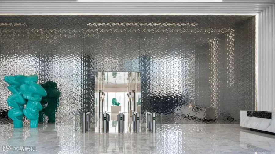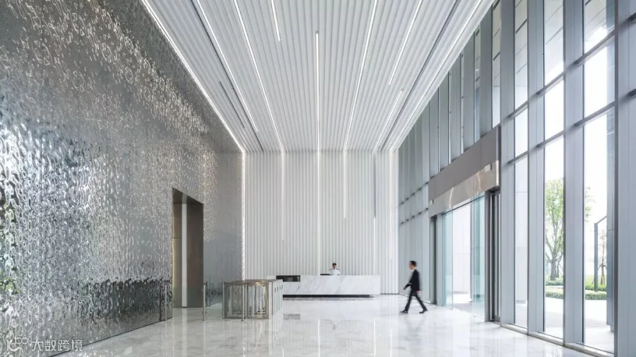同时,时代E-PARK(番禺)一期的设计美学蕴藏着对未来世界的无限遐想:挑高大堂内的金属波浪墙面,既由反射物定义了墙面,也映照了未来的讯息洪流;大量的灰与白将焦点锁定,传达的是科技、智能和想象;绝对的线条,讲求的是效率、直接、快速,未来你我之间更精准的交流。