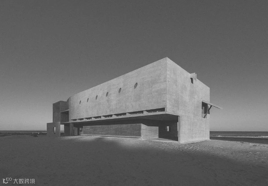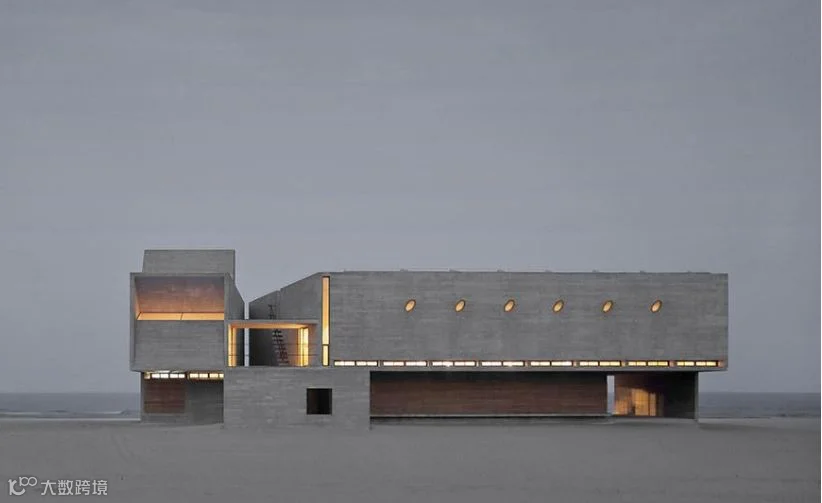 整个黄金海岸工业区,灰色的秦皇岛孤岛图书馆寂静地立于海边,远眺像是一个巨人孤单的席地而坐,遥望着大海。