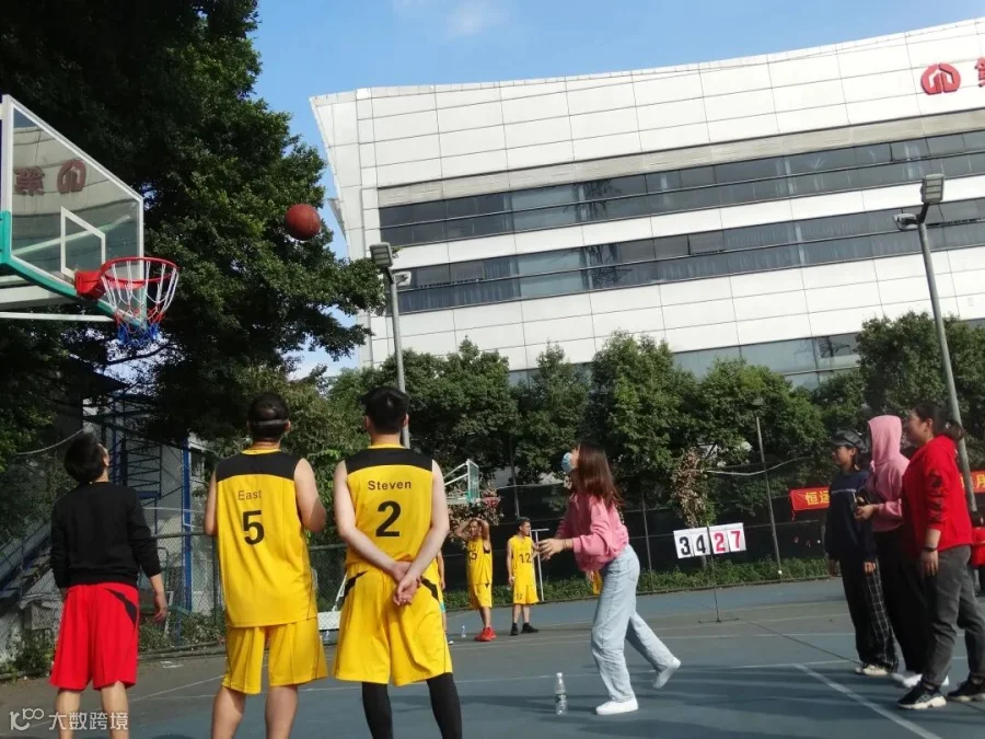 胯下运球、转身过人、后仰跳投、三步上篮、干拔三分,场上队员热情高涨,尽显风采,在力量、技巧和速度的多重对抗之中,偶有队员相互间出现碰撞甚至跌倒,但并未因此影响比赛。场边的啦啦队也不遗余力地为每一个默契的配合和精彩的进球呐喊喝彩。