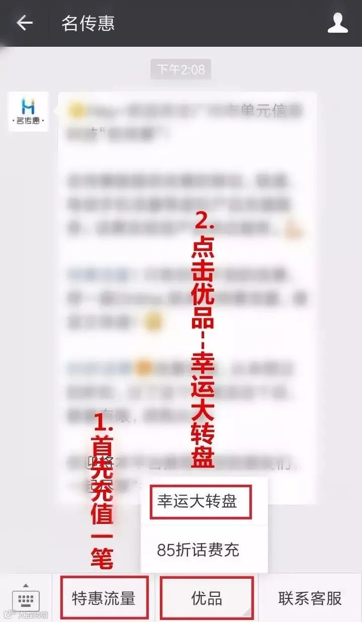 收到运营商发送流量充值成功短信后,点击优品--幸运大转盘,即可参与转盘活动;