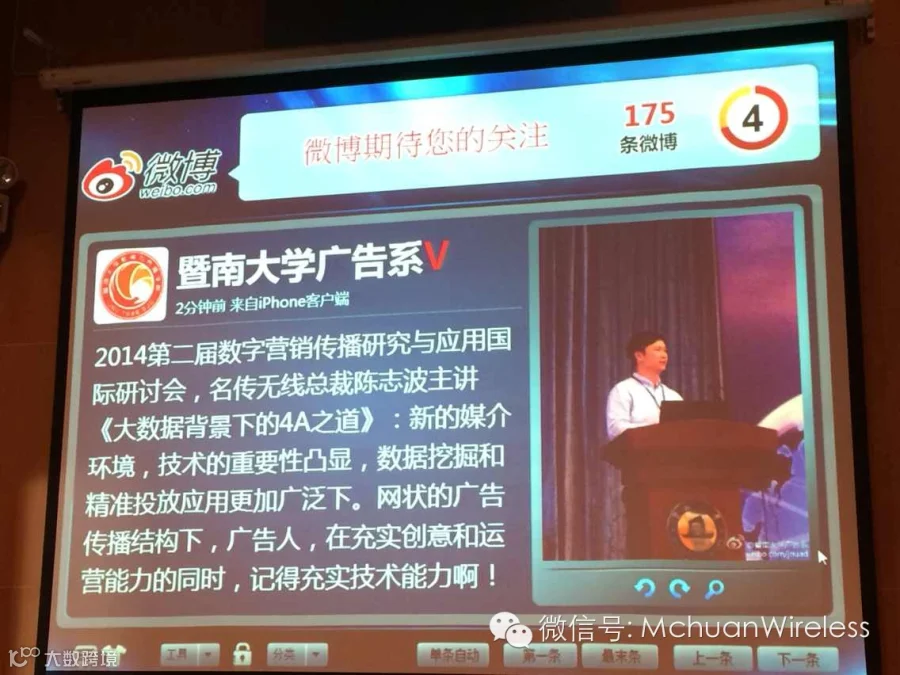 暨南大学广告系微博现场直播陈志波先生的演讲。