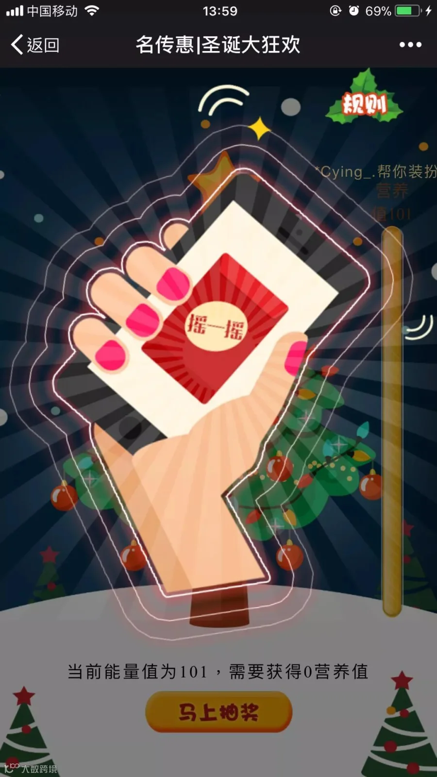 3、能量值满后,即可获得圣诞活动抽奖资格