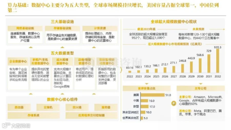 全球的数据中心规模正处于持续增长中,美国容量占据全球第一,中国位列第二。