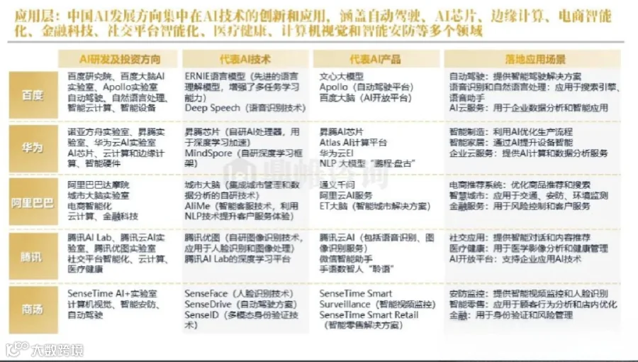中国 AI 技术的应用已经渗透到自动驾驶、AI芯片、边缘计算等多个领域,显示出AI技术的广泛性和深远影响。