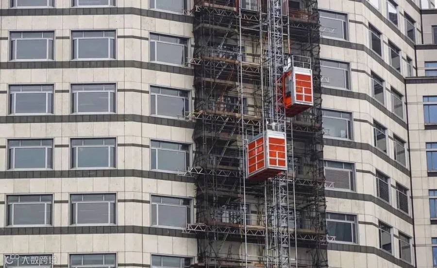 ▲传统室外施工升降机,操作设备完全外露受外界环境影响较大