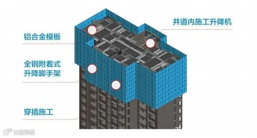 目前在主体施工工艺中,最常用的技术是全钢爬架和铝合金模板。这两项技术不仅减少了安全隐患,而且加快了施工速度,节约了成本。而传统外挂式施工升降机与这两项技术的配合较差,一定程度上耽误施工进度。