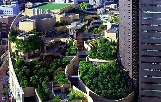 进入难波公园后,会让你以为自己来到了一个生态绿色公园。从街道地平面上升至8层楼的高度,层层推进、绿树茵茵。