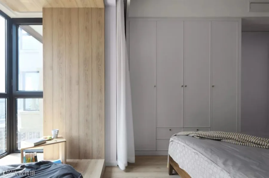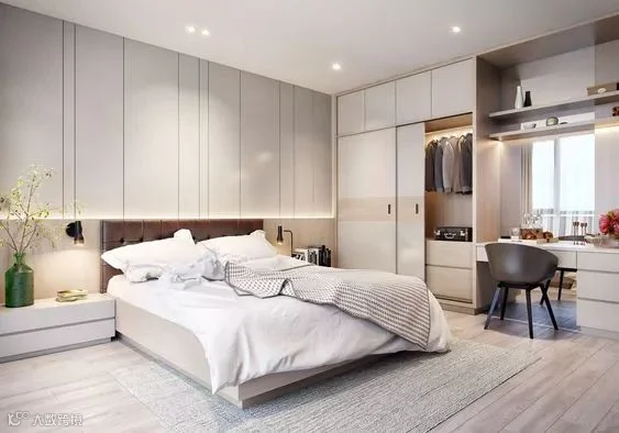 在小小的卧室空间里,组合衣柜最大的优势就在于,它不仅仅发挥了纯粹的衣物收纳功能,还可以与书桌、书架、化妆台、办公区等组合起来,有着超乎想象的实用性。