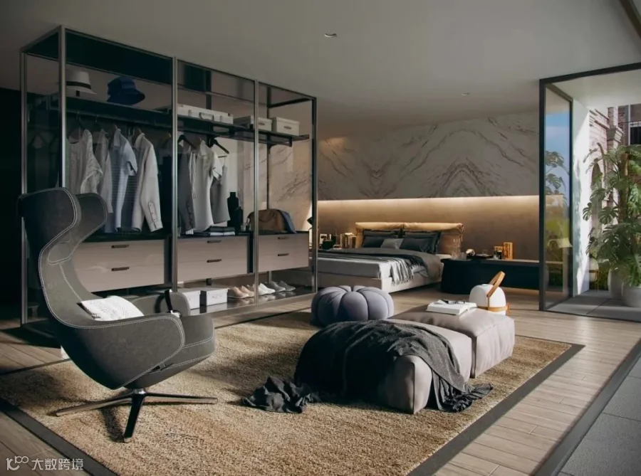 但如今,随着人们审美水平的提高,这种不利于通风换气的传统衣柜,已经渐渐被透明的玻璃材质所取代。所以,在那些追求时髦的品位人士家里,一个个精致大气的透明衣柜开始流行,给卧室带来不一样的惊艳美感。