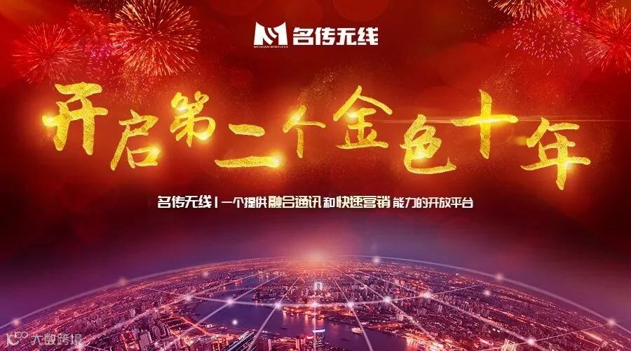 新的一年,名传无线也将继续发挥过去10年积累的经验与成果,在开启第二个金色十年的企业展望下,以名传无线开放平台为基础,聚合融合通讯能力、快速营销能力,大数据能力、通过领先的无线技术、程序化创意、奖励资源接入和丰富的大数据处理经验,为更多企业及合作伙伴提供自主化、自动化、智能化的一站式能力开放平台,为企业营销赋能,让营销更简单。