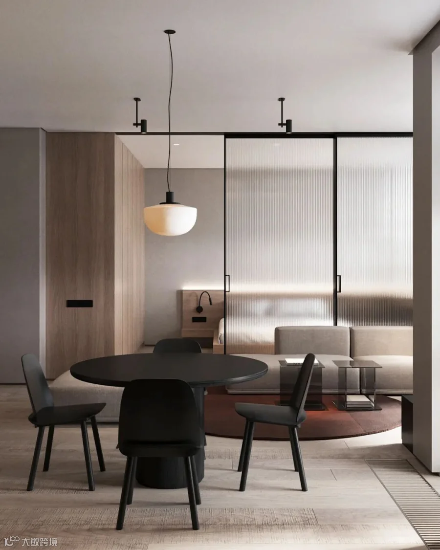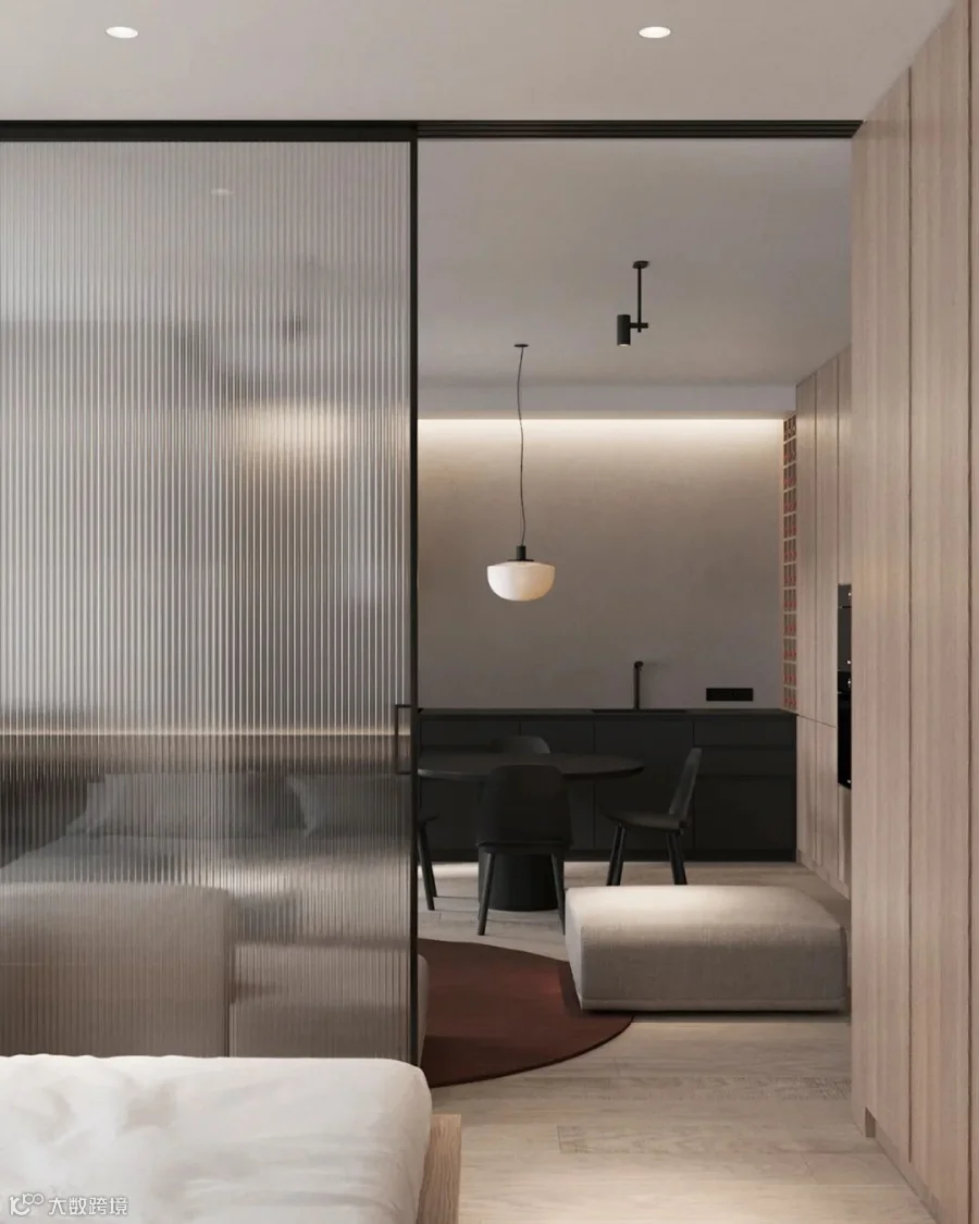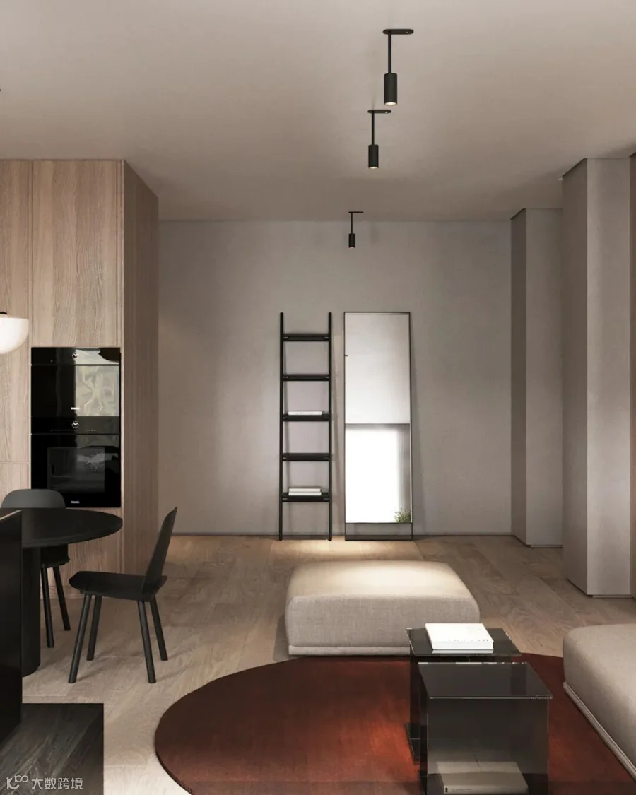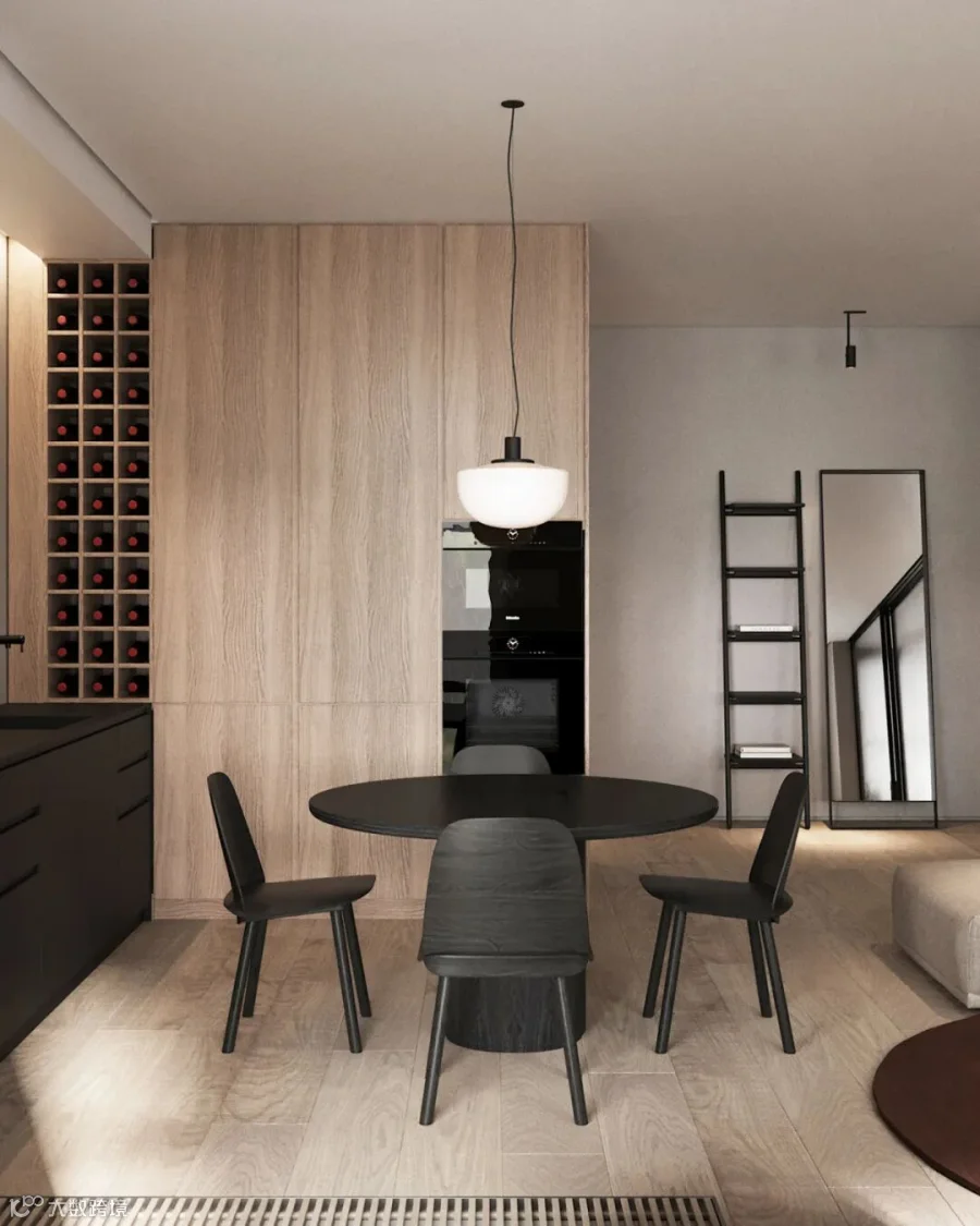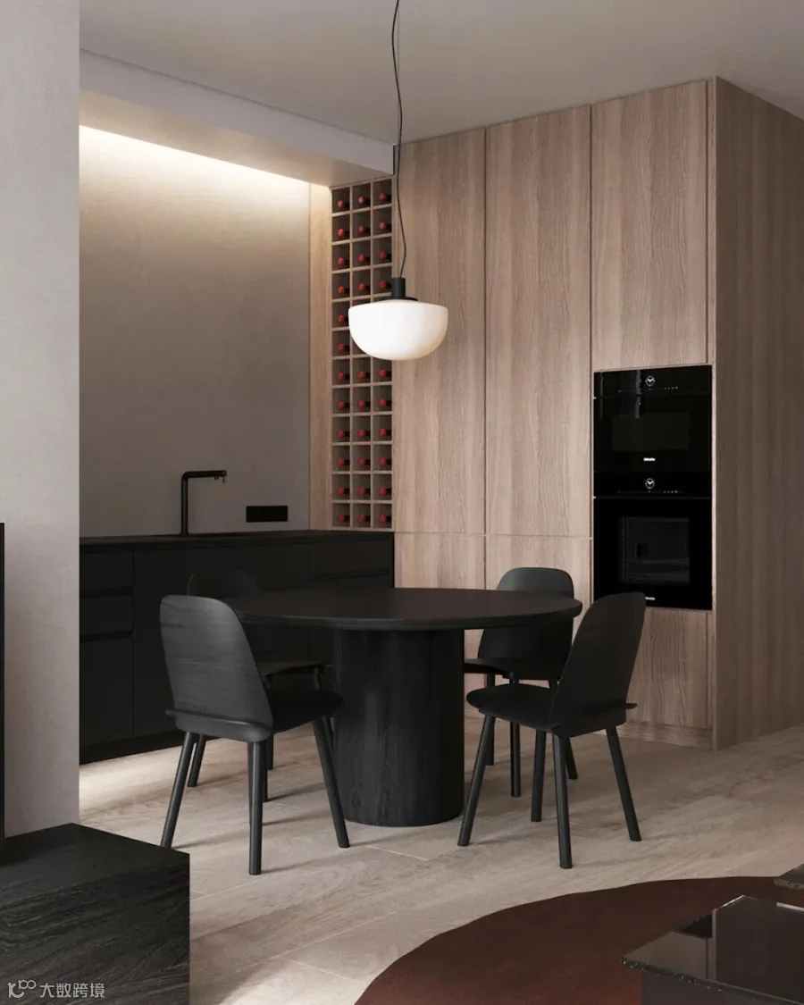 在生活,功能和美学的每一个细节等方面创造一个和谐的空间。设计师将线条和材质,以灰木色调为基底,并通过深红色的点缀,配上柔和的灯光,为整个空间营造出温馨优雅的氛围。
