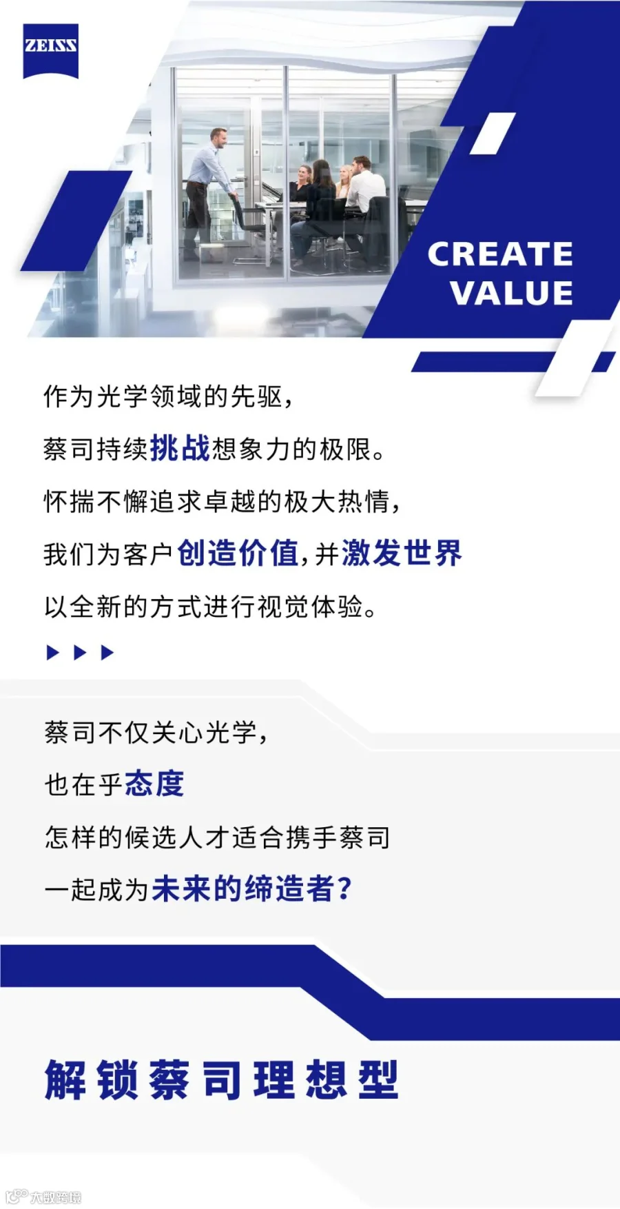 欢迎关注蔡司中国官方招聘账号!蔡司是全球光学和光电领域的技术先锋。蔡司在全球近50个国家共拥有约43,000名员工。公司于1846年在耶拿成立,总部位于德国奥伯科亨。在这里,您可以进一步了解蔡司中国的人才招募信息。加入我们,体验非凡机遇!
