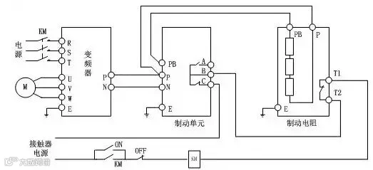 普通的制动电阻无保护型制动单元配线,只需要保证制动电阻的功率与散热条件良好,并不至于发生火灾等隐患,对于无特殊要求的场合,可以根据无保护型方案选配元件及接线。
