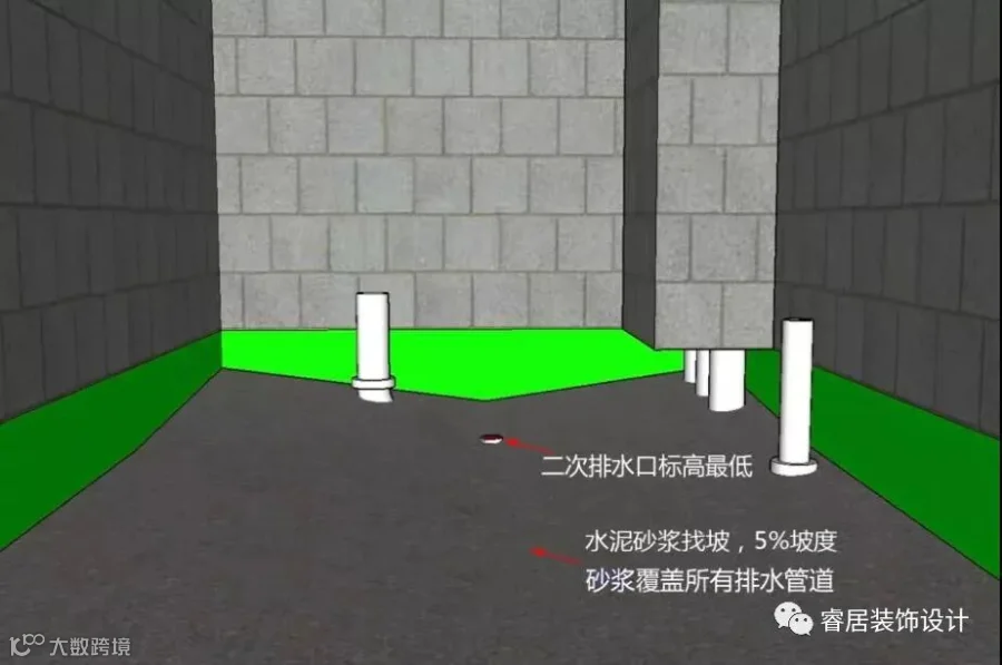 二次排水,就是在沉箱内做一个二次排水口。当卫生间发生漏水、渗水时,水可以流到沉箱里,然后从二次排水口排走,使卫生间保持整洁干爽。