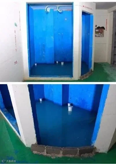 (3)先用猪棕刷刷涂边角部位,再用板刷大面积刷涂。涂刷防水层是个细心活,要涂抹均匀,避免漏刷,才能起到防水的作用。