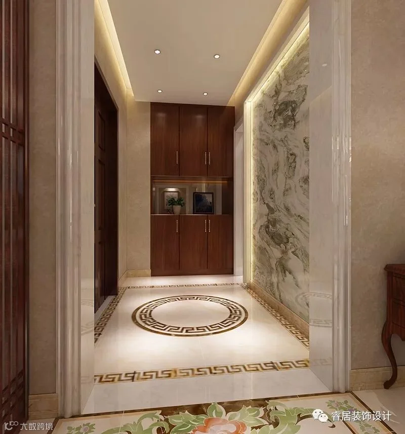 ▲玄关:以中式意象作为空间的风格,结合平面直线的意态性质,演绎出具有东方特色的情调。