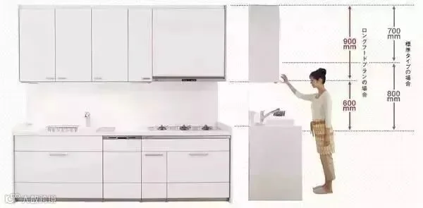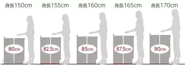 握锅柄最舒适的高度应该是决定台面高度的重要标准,通常台面的高度为85-90cm,这样的高度同时还预留出了足够的收纳、储藏空间。