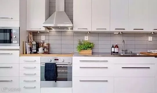 吊柜高度也要根据主人的高度来定,建议使用平开门,比上翻柜门方便,也可以用隔板,物品拿取方便,还可以利用厨房的死角空间。