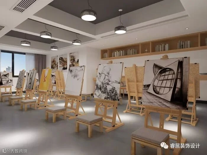 画室教学区,不论是学习区还是休闲区都要以温馨的氛围为主。