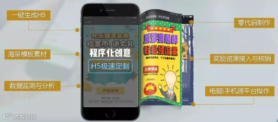 展业工具(销售展示):支持免费把行业TOP10营销活动转化H5模板,便于企业快速复制使用;支持活动链接微信分享,帮助企业活动快速传播;