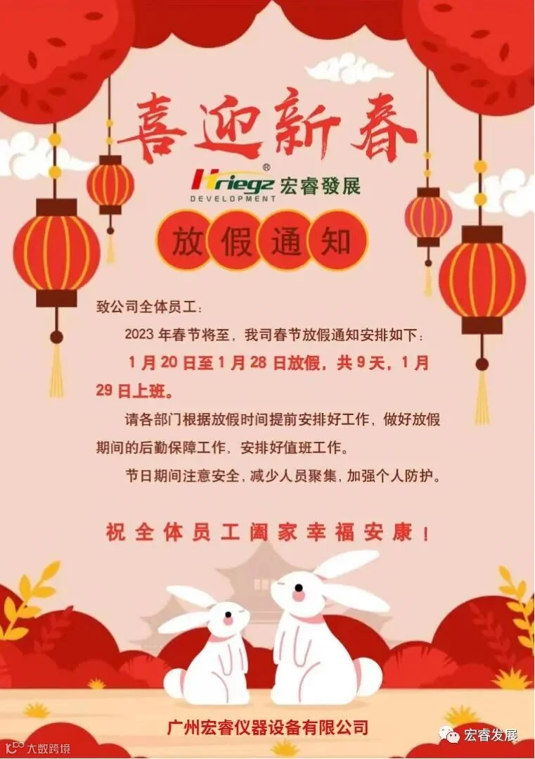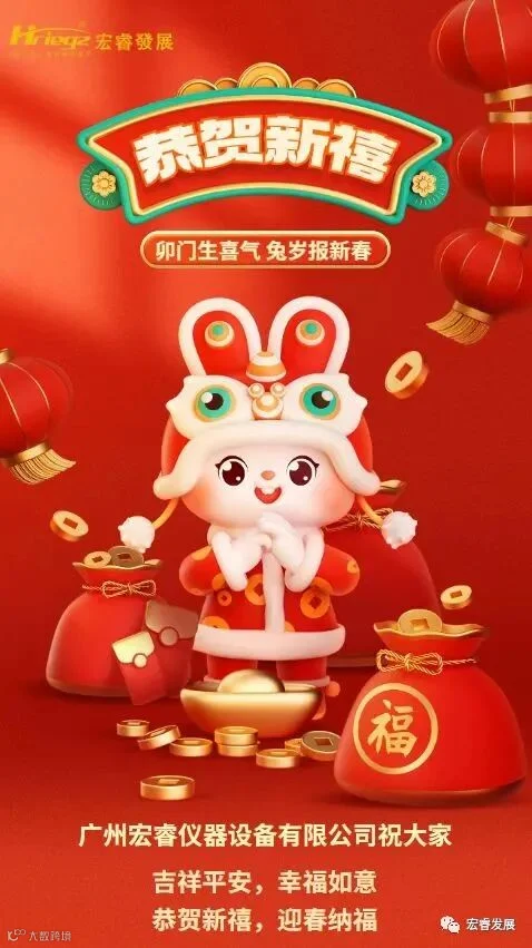 广州宏睿仪器设备有限公司祝所有的客户朋友们,合作伙伴们,老师们,各级主管部门工作人员兔年吉祥,工作顺利,生意兴隆,万事如意!愿您新年伊始,万象更新,扬眉吐气,平安喜乐!