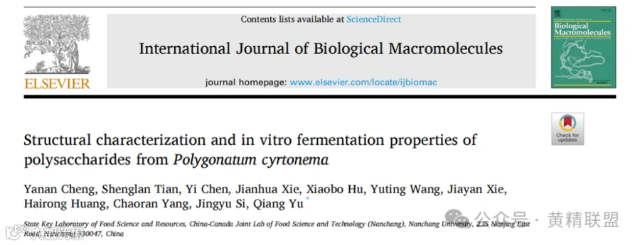 近年来,越来越多的学者关注多糖及对肠道微生物的调节作用,多花黄精多糖构效有待进一步探明。近日,南昌大学余强教授团队,在International Journal of Biological Macromolecules(分区Q1,IF: 8.025)期刊上发表了题为发表了题为“Structural characterization and in vitro fermentation properties of polysaccharides from Polygonatum cyrtonema”的研究型论文。