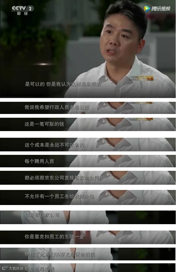 刘强东因为这封信,也在管理层内部发了一次火。京东现在有十二万人,其中八万都是仓储物流人员,只要把员工交纳五险一金的事外包给第三方公司,京东一年就能省十七个亿,十七个亿的净利润,京东早就可以赚钱了。