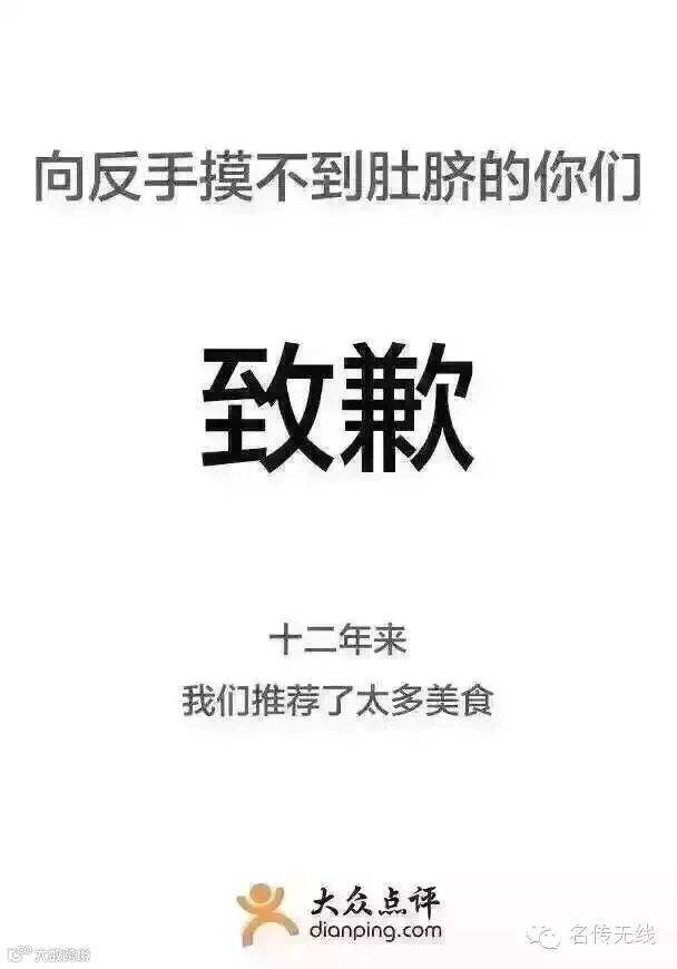 点评:大众点评的配文真是情怀十足!而且间接地把自己的APP的卖点植入去了,反正大家都认为是吃胖了够不到肚脐儿。