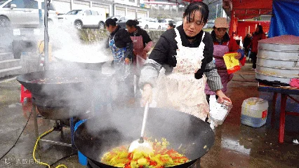 一大早,筹备已久的一钛员工拉横幅、摆板凳,协助庖厨团队起火、备菜、下锅,一派喜气洋洋。一年的辛劳、对来年的憧憬,都烩进了这一锅鲜香滚烫之中。